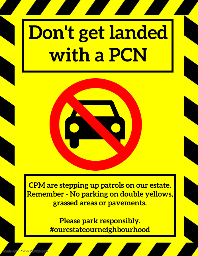 No one wants an unexpected charge appearing in their letterbox – so please ensure that vehicles are either parked in your allocated bay, or alternatively on Papyrus Way*